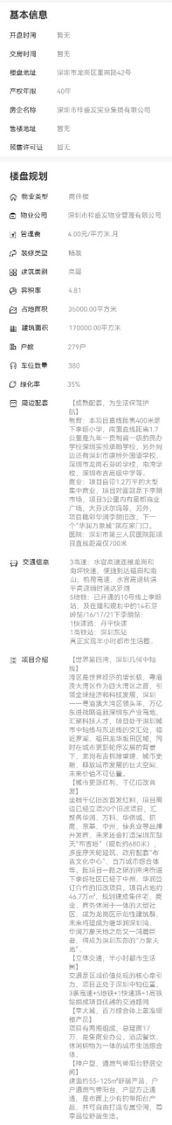 區域:深圳市龍崗區里南路42號 最新開盤:-