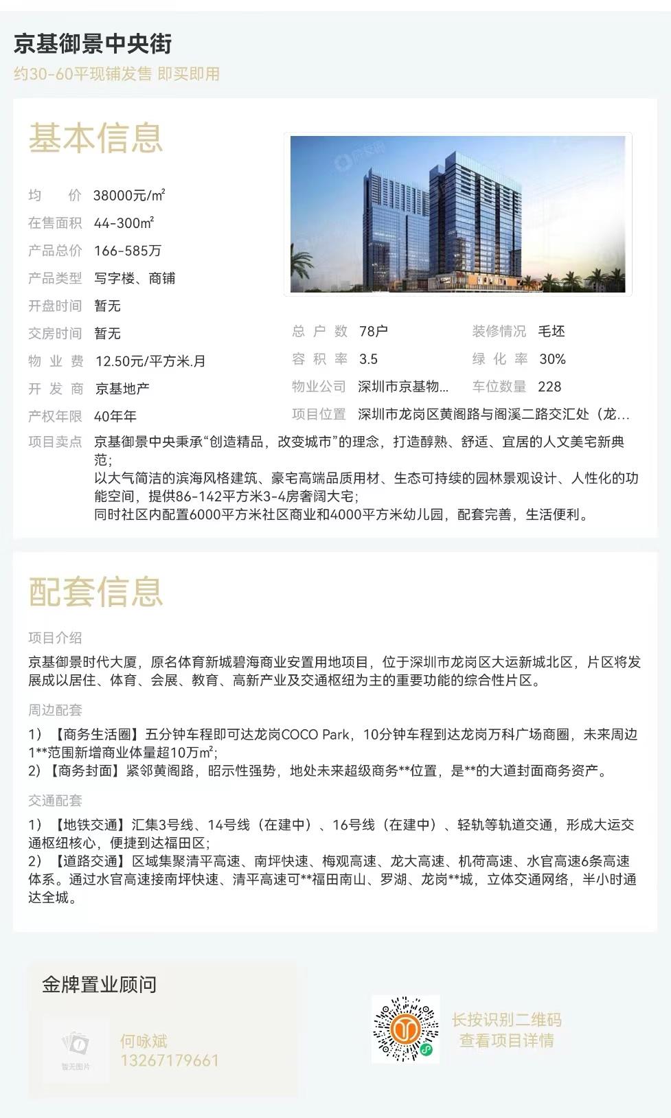 ?單價1字頭 搶駐大運地標總部商務 現樓交付?大運核芯地鐵直連 龍城公園京基品牌,超高配置 建面約萬m2產城活力都會 單套約461-508m2總部辦公集群