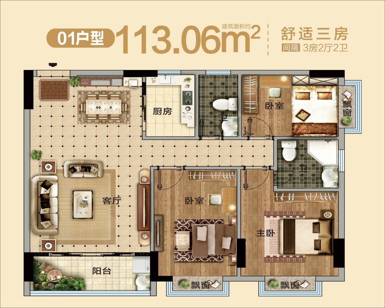 三房:106.8萬首付50萬起