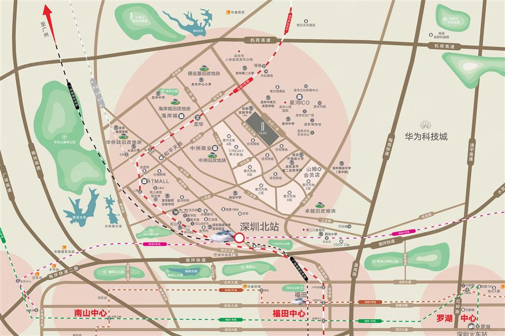 粵港澳大灣區(qū)交通樞紐,毗鄰地鐵4號線龍華站,四站換乘深圳北站,廣深港高鐵由北站到香港西九龍約18分鐘,到廣州約29分鐘,輕松實現(xiàn)大灣區(qū)生活圈。